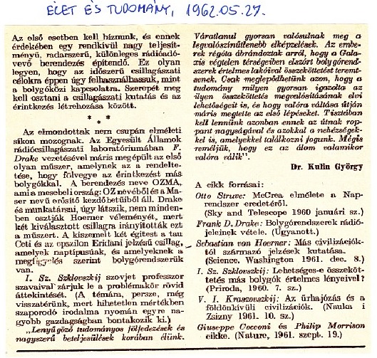 Élet és Tudomány 1962. május 27.